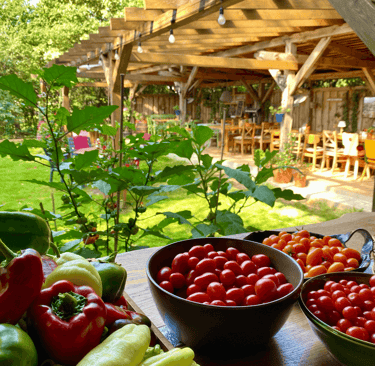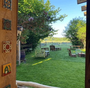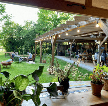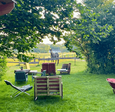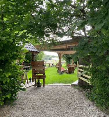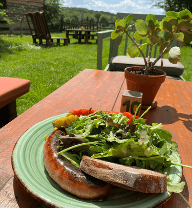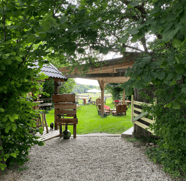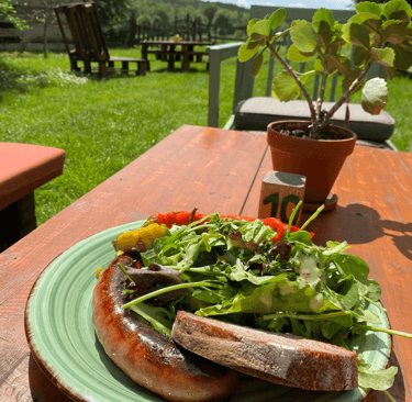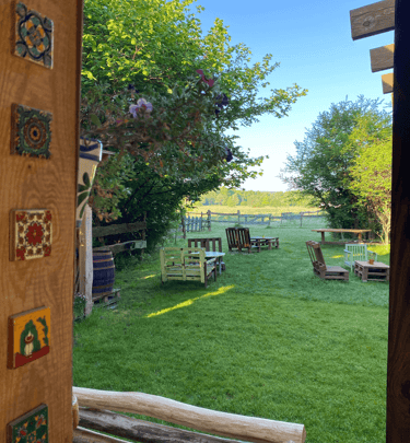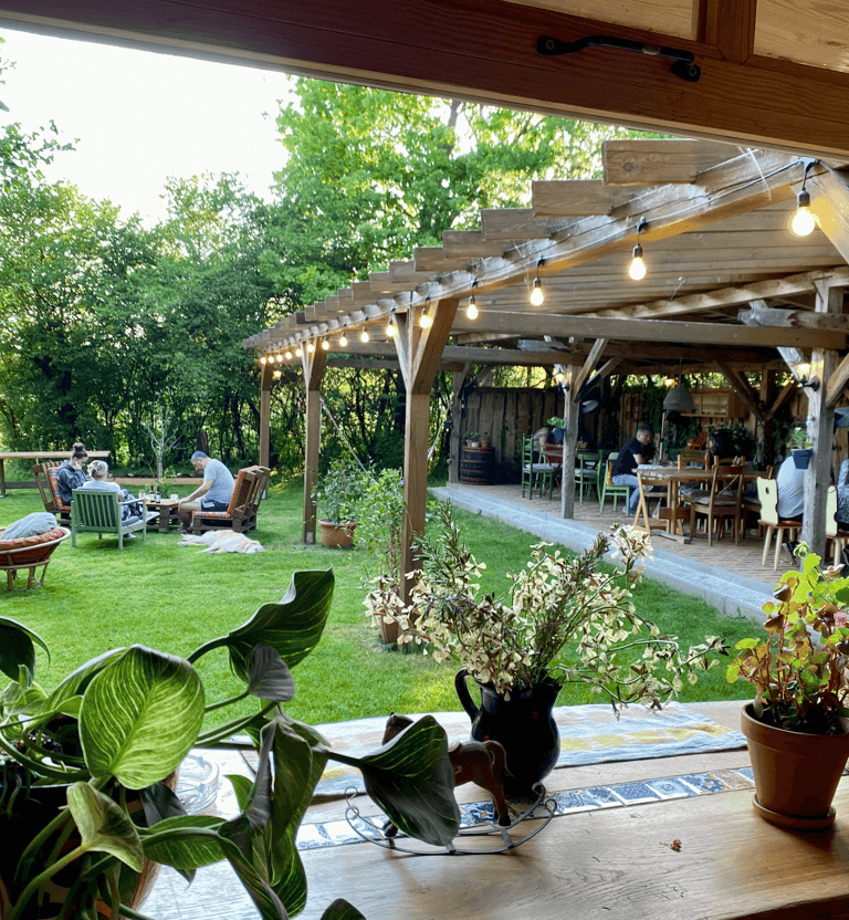 Une terrasse chaleureuse au cœur d'Örség, parfaite pour savourer nos tapas et plats faits maison.