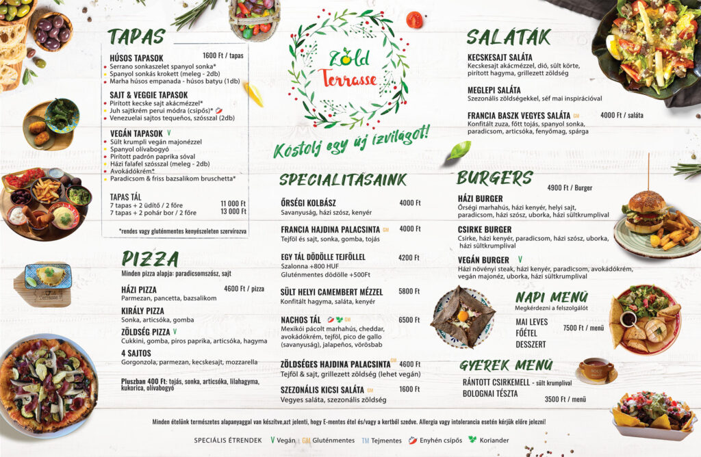 Mindegyik salátát zöldsaláta alappal és házi öntettel szolgáljuk fel.
